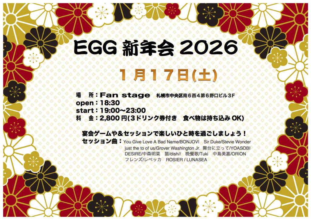 毎年恒例の、EGG新年会のお知らせです